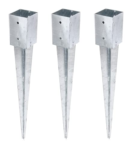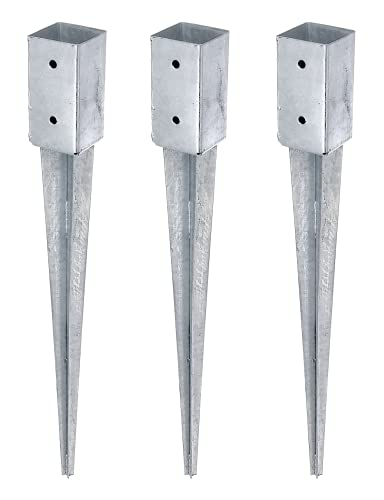 Alberts 211424 Ancre à enfoncer | pour poteau en bois rond ou carré | galvanisée à chaud | 91 x 91 mm | longueur totale 750 mm | Set de 3 pièces