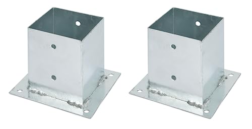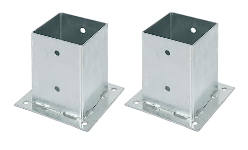 Alberts 215248 Ancre sur platine | pour poteau en bois rond ou carré | galvanisée à chaud | 101 x 101 mm | Set de 2 pièces