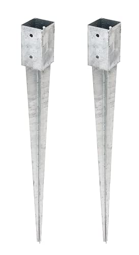 Alberts 211837 Ancre à enfoncer | pour poteau en bois rond ou carré | galvanisée à chaud | 101 x 101 mm | longueur totale 900 mm | Set de 2 pièces