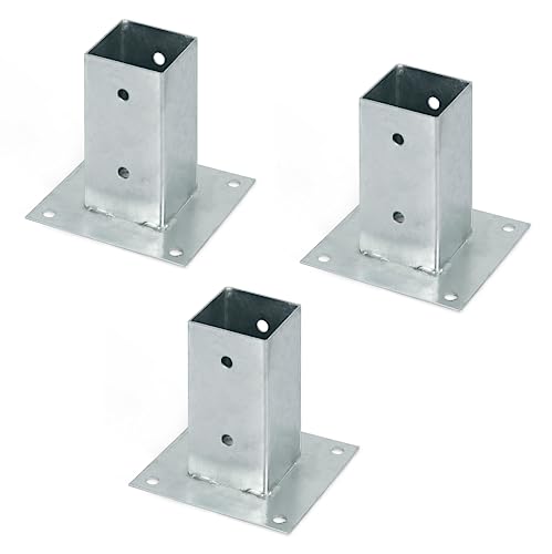 Alberts 211899 Ancre sur platine | pour poteau en bois rond ou carré | galvanisée à chaud | 91 x 91 mm | Set de 3 pièces