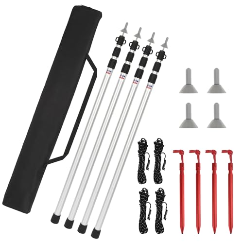 Jopassy Lot de 4 poteaux de tente réglables en hauteur de 87,5 à 234,5 cm - En alliage d'aluminium - Avec mécanisme de verrouillage torsadé - Pour tente, bâche, voile d'ombrage ou bâche