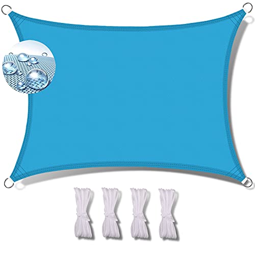 MoSundi Voile d'ombrage pour protection solaire, tissu Oxford imperméable, 1,8 m à 4,3 m, avec revêtement anti-UV, bleu, 1 pièce de 4,3 m à 6 poteaux