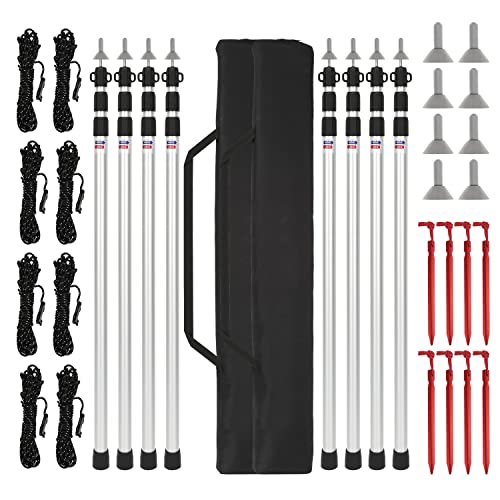 Jopassy Lot de 8 poteaux de tente réglables en hauteur de 87,5 à 234,5 cm - En alliage d'aluminium - Avec mécanisme de verrouillage torsadé - Pour tente, bâche, voile d'ombrage ou bâche