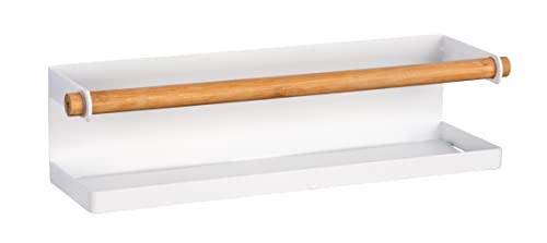 WENKO Étagère à épices Magna, étagère magnétique en métal avec détail en bambou pour ranger et présenter les pots à épices, à fixer sans percer avec un aimant ou du ruban adhésif, 32 x 8 x 8 cm, blanc