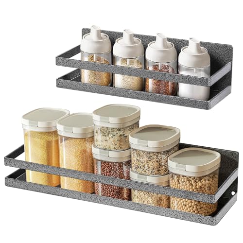 Uten Lot de 2 étagères magnétiques pour épices - Amovibles - Sans perçage - Pour l'organisation et le rangement de pots à épices et bouteilles d'assaisonnement - Noir