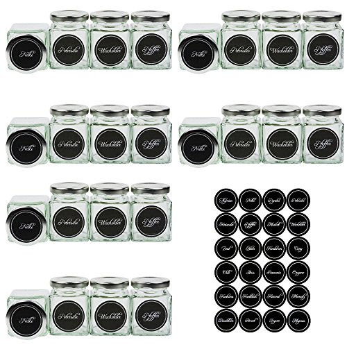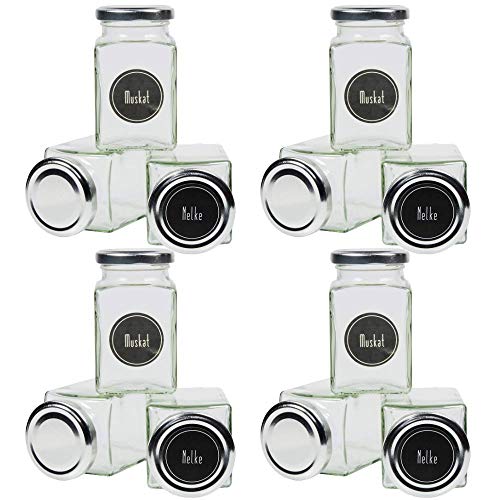 Mikken Lot de 24 petits pots à épices 106 ml avec 24 étiquettes à épices