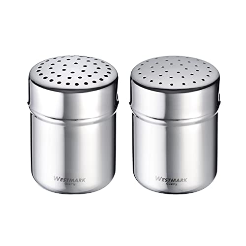 Westmark Lot de 2 pots à épices grossiers et fins avec couvercle fraîcheur - Volume : environ 80-100 g - Plastique/acier inoxydable - Gros, argenté/transparent - 695222E6