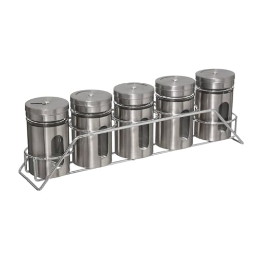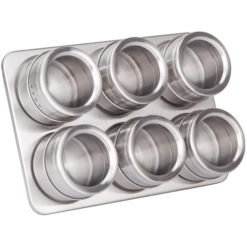 RICOO Ensemble de Pots à Épices GR001, Lot de 6 Pots Magnétiques en Acier Inoxydable, Maître de la Cuisine Avec Bocaux Rangement, Design Unique - 22 x 15,5 x 4,7 cm