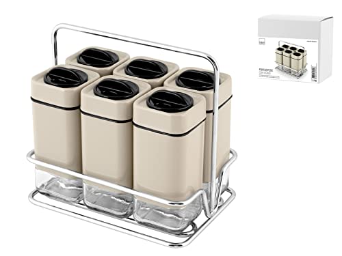 H&H Aroma Lot de Pots à épices avec Stand, Beige, 7 unités