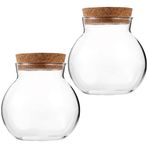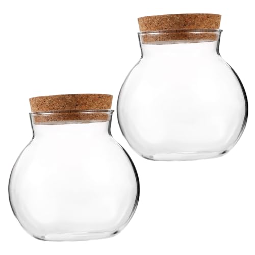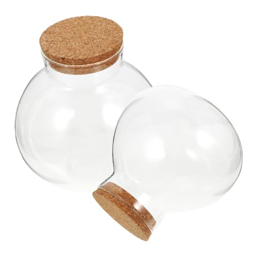 jojofuny Lot de 2 Bocaux en Verre Ronds 10X11 CM Bouchon en Liège Bouteilles Durables pour Micropaysage Décoration Intérieure et Rangement Pots Transparents Compacts pour Maison et