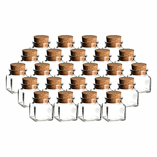 gouveo Set de 24 pots à épices carrés 150 ml avec bouchon - Petits pots en liège avec bouchon en liège - Pots à provisions vides pour herbes, épices - Petite boîte en verre