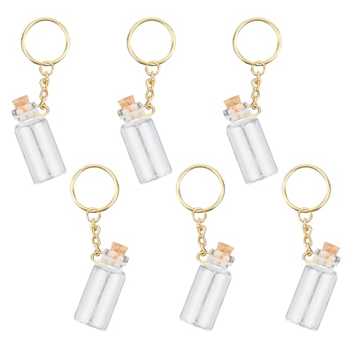 Gosknor 6pcs Mini Bouteilles en Verre, Petites Bouteilles de Potion avec Bouchon en Liège Petites Bouteilles Transparentes Pots de Sorts avec Bouchon en Liège avec Porte-Clés en Fer