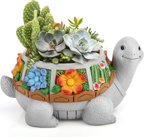 Grovind Pots de fleurs pour plantes grasses, tortue avec trou de drainage, jolis pots de fleurs pour cactus, plantes succulentes pour plantes d'intérieur, maison, bureau, jardin, pot de fleurs cadeaux