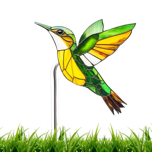 Ahuuen Piquets d'oiseaux pour Jardin, Piquet Oiseau en Acrylique pour Pot de, Fantaisie Effet Vitrail Résistant Aux Intempéries pour Pots De Cactus Aloès Orchidées