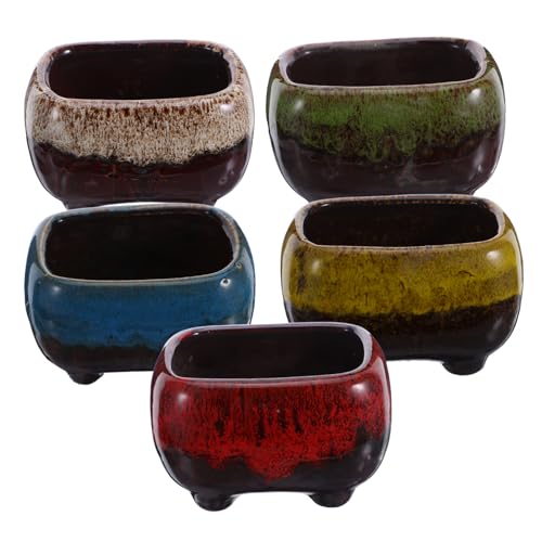 ARTKETTY Lot de 5 Petits Pots à succulentes en céramique émaillée avec Drainage pour Cactus, Fleurs et Plantes d'intérieur, 10,9 cm