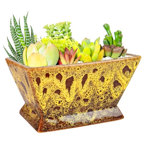 ARTKETTY Pots de Plantes succulentes rectangulaires en céramique de 9,8 Pouces de Long avec Drainage, Petit Pot de Cactus à Fleurs avec Plateau Bonsai Plant Window Box pour intérieur/extérieur