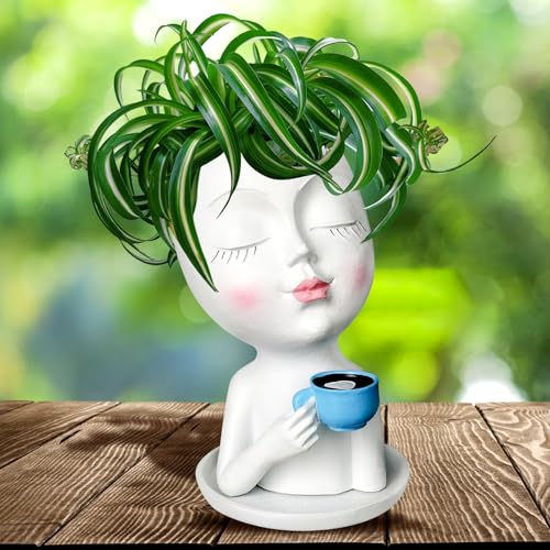Toparad Pots de Fleurs en Forme de tête de Visage - Joli Vase pour Plantes Grasses - Cadeau Unique avec Trou de Drainage et Plateau pour la Maison, Le Jardin, Les Cactus (Blanc)
