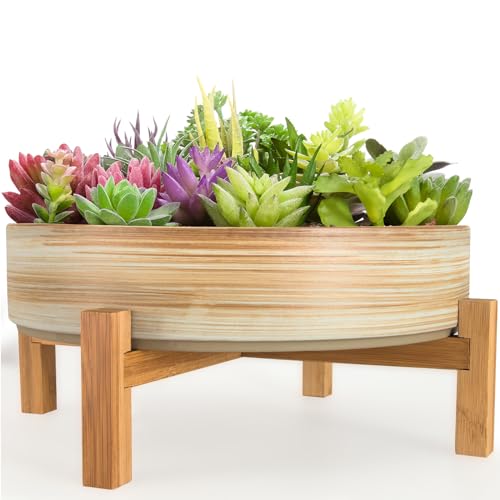ARTKETTY Pots de Fleurs succulentes – Grand Pot de bonsaï de 25,5 cm avec Support de Drainage, Pots Peu Profonds pour Plantes Grasses d'intérieur et Plantes Grasses, Bol décoratif pour Fleurs, Cactus