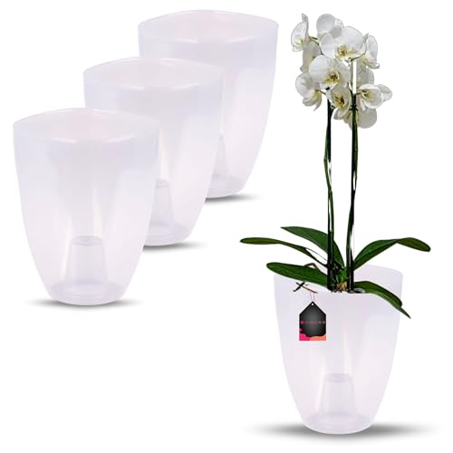 GT Garden Lot de 3 Pots pour orchidées avec réserve d'eau - Arte-dea Vert Clair Transparent 2 litres