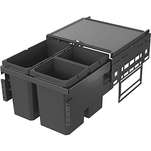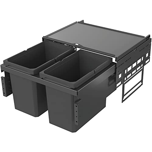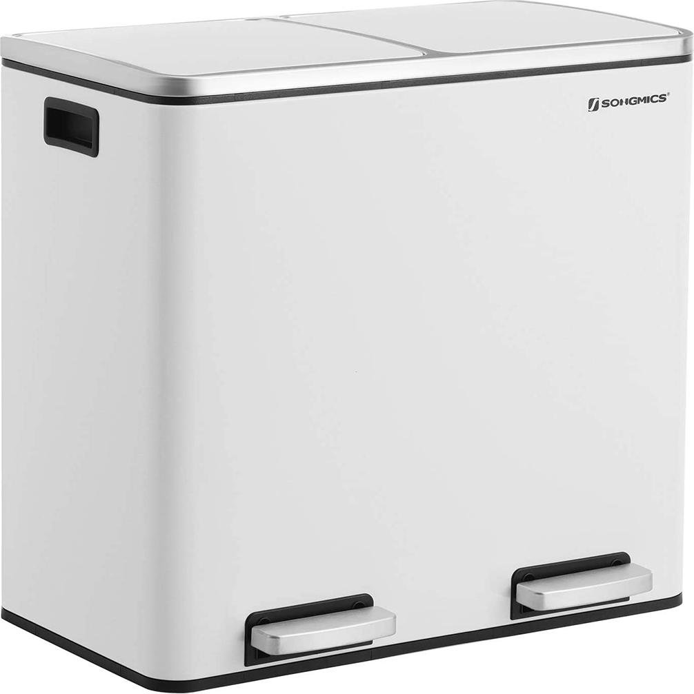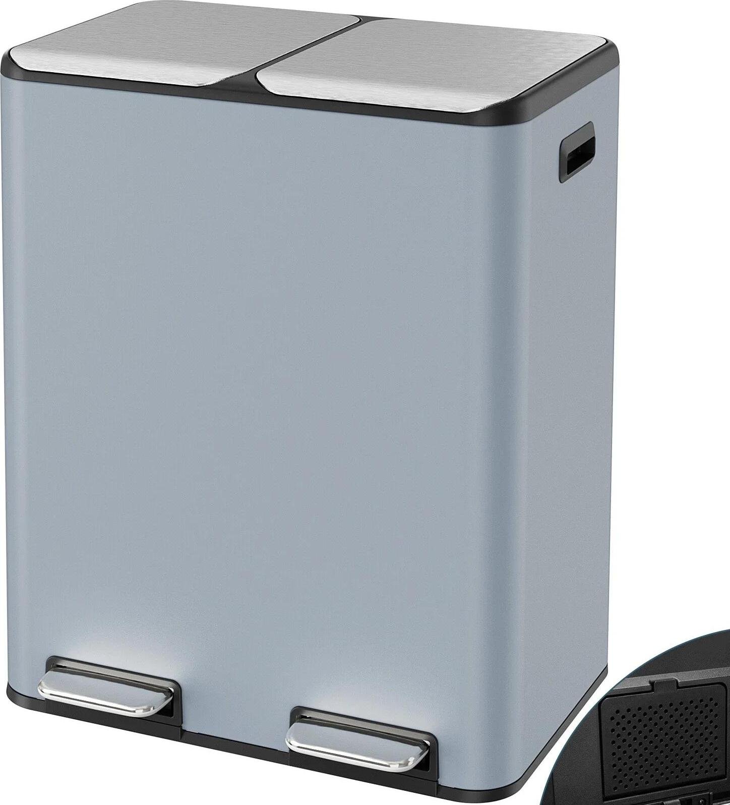 Poubelle de cuisine - Poubelle à 2 compartiments - 2×15 L (30 L au total) - Tri des déchets - Argent
