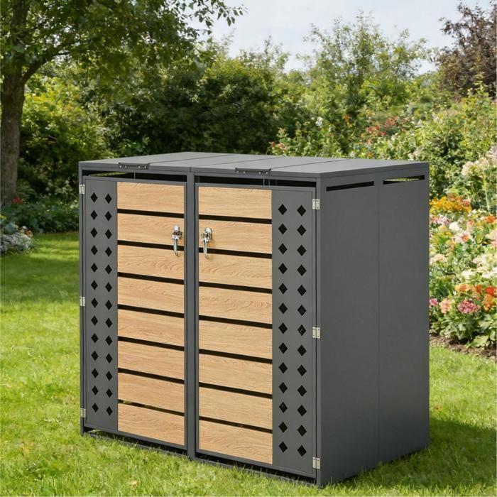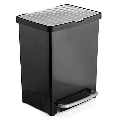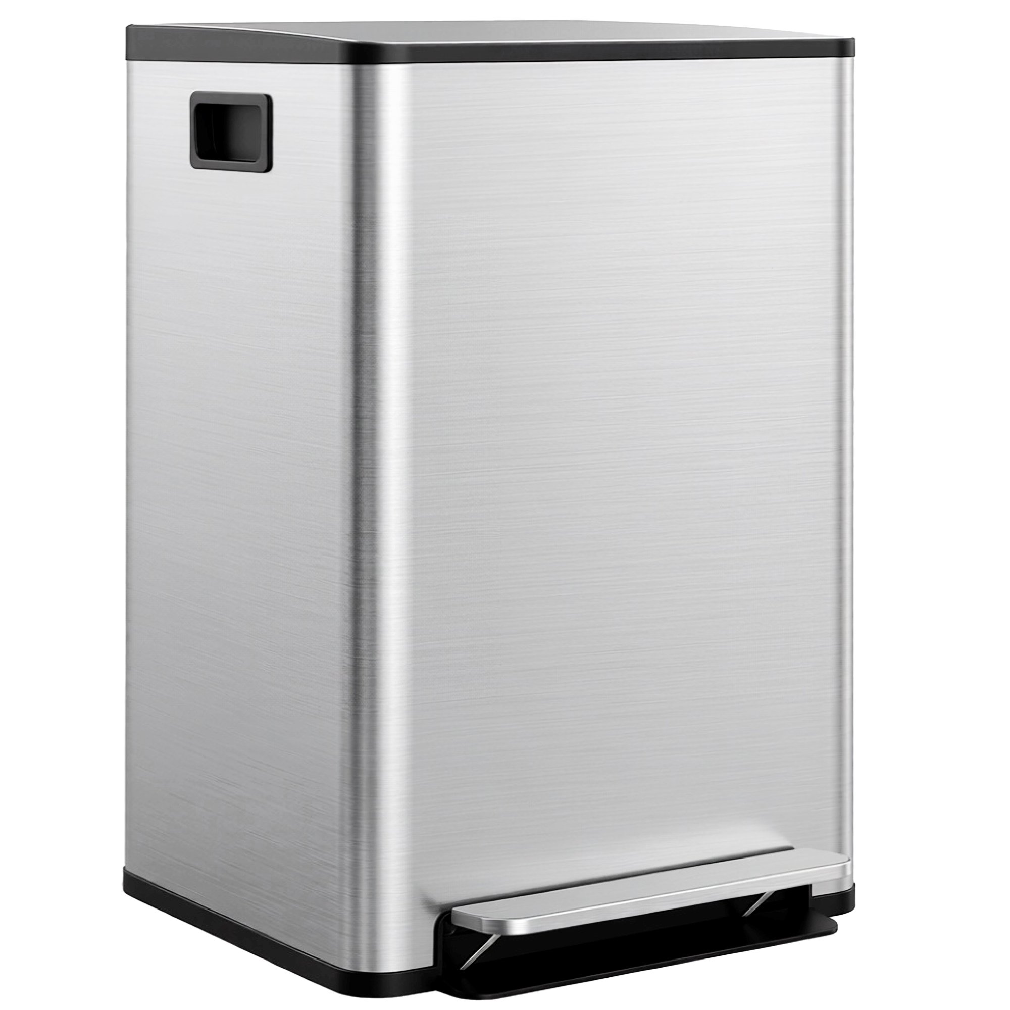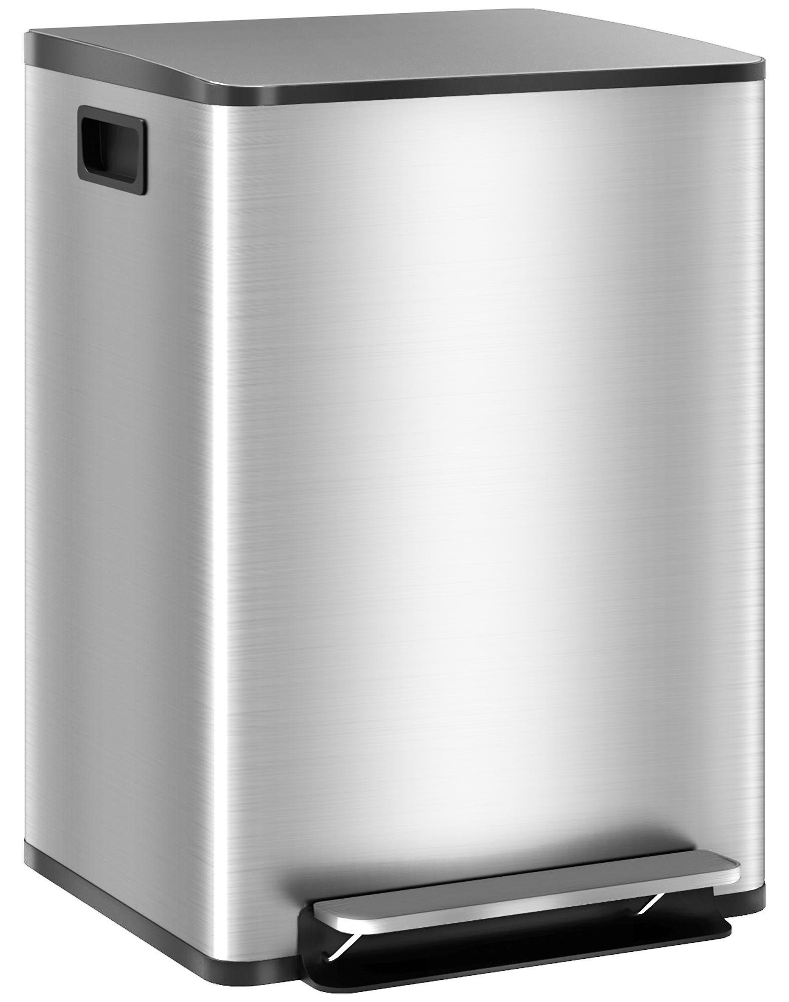 Poubelle de cuisine - Poubelle à 2 compartiments - 2×15 L (30 L au total) - Tri des déchets - Argent
