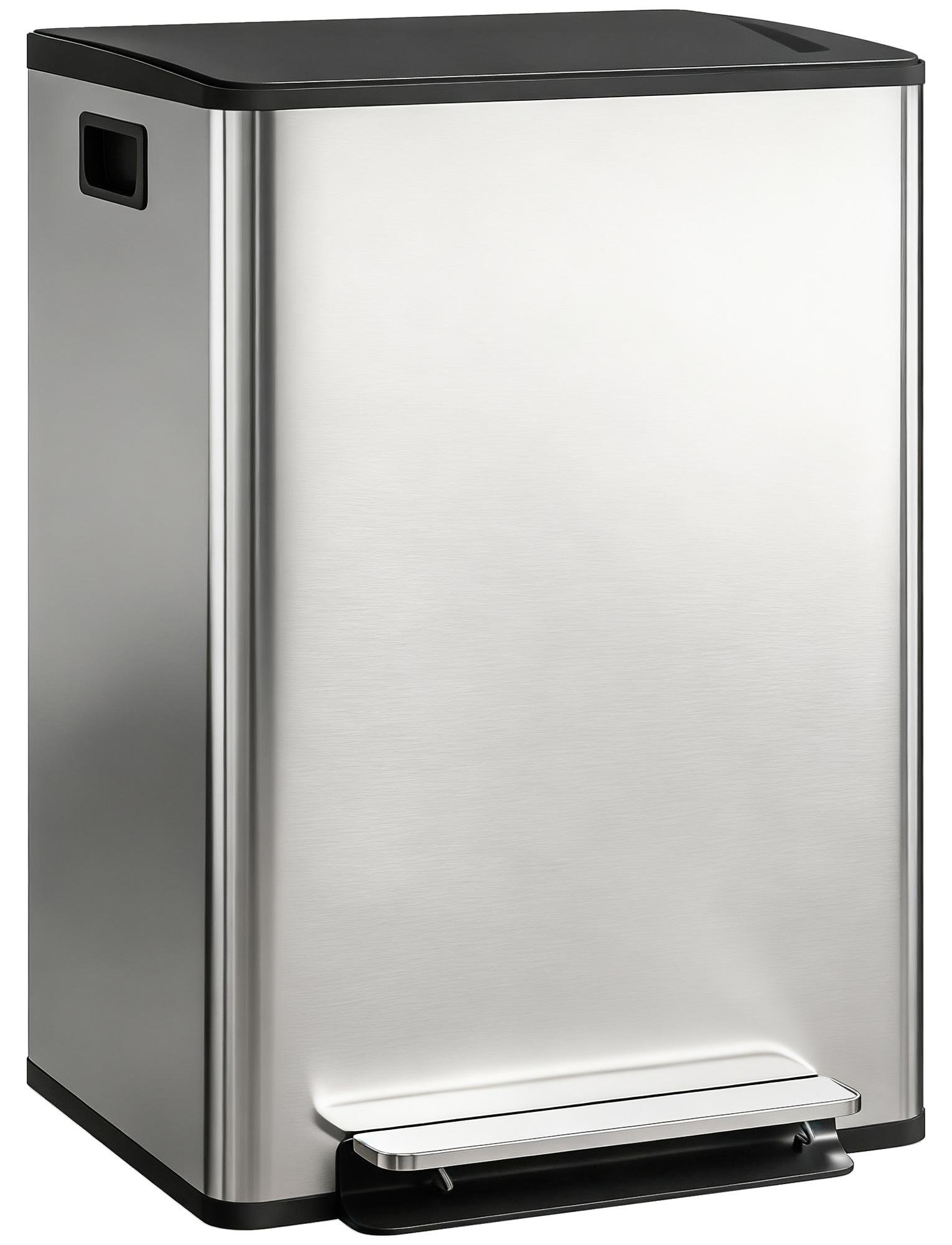 Poubelle 2x30l en métal avec couvercle et pédale, conteneur avec seau intérieur pour salon et bureau