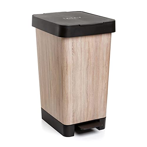 TATAY Poubelle de Cuisine Smart, Capacité 25L, Pédale Rétractable, Polypropylène, Sans BPA, Sac Poubelle 30L. Bois. Dimension 26 x 36 x 47cm