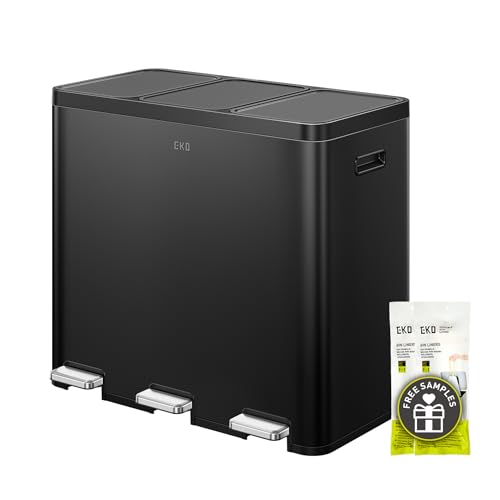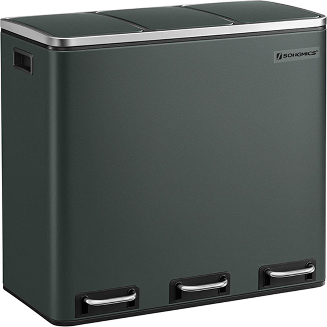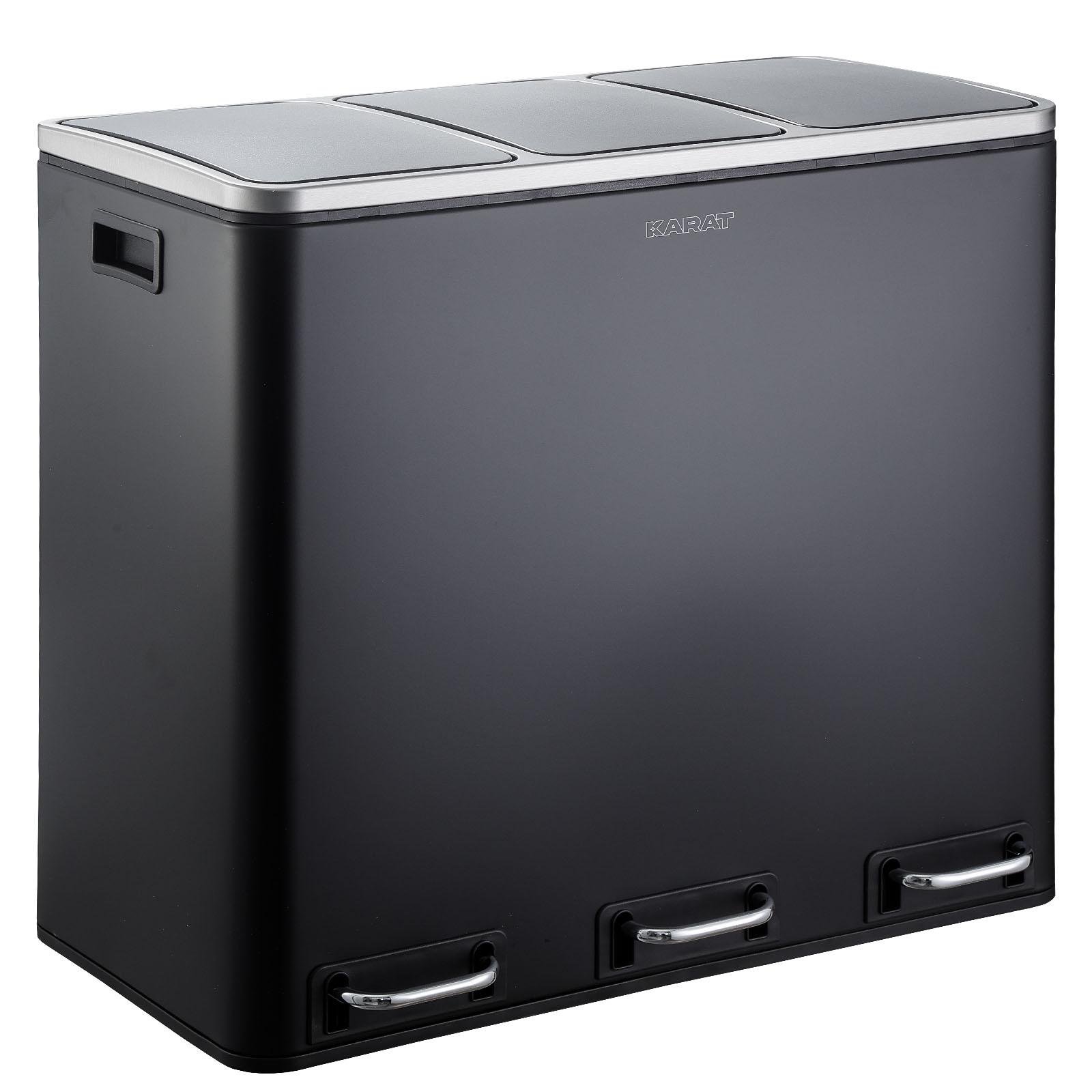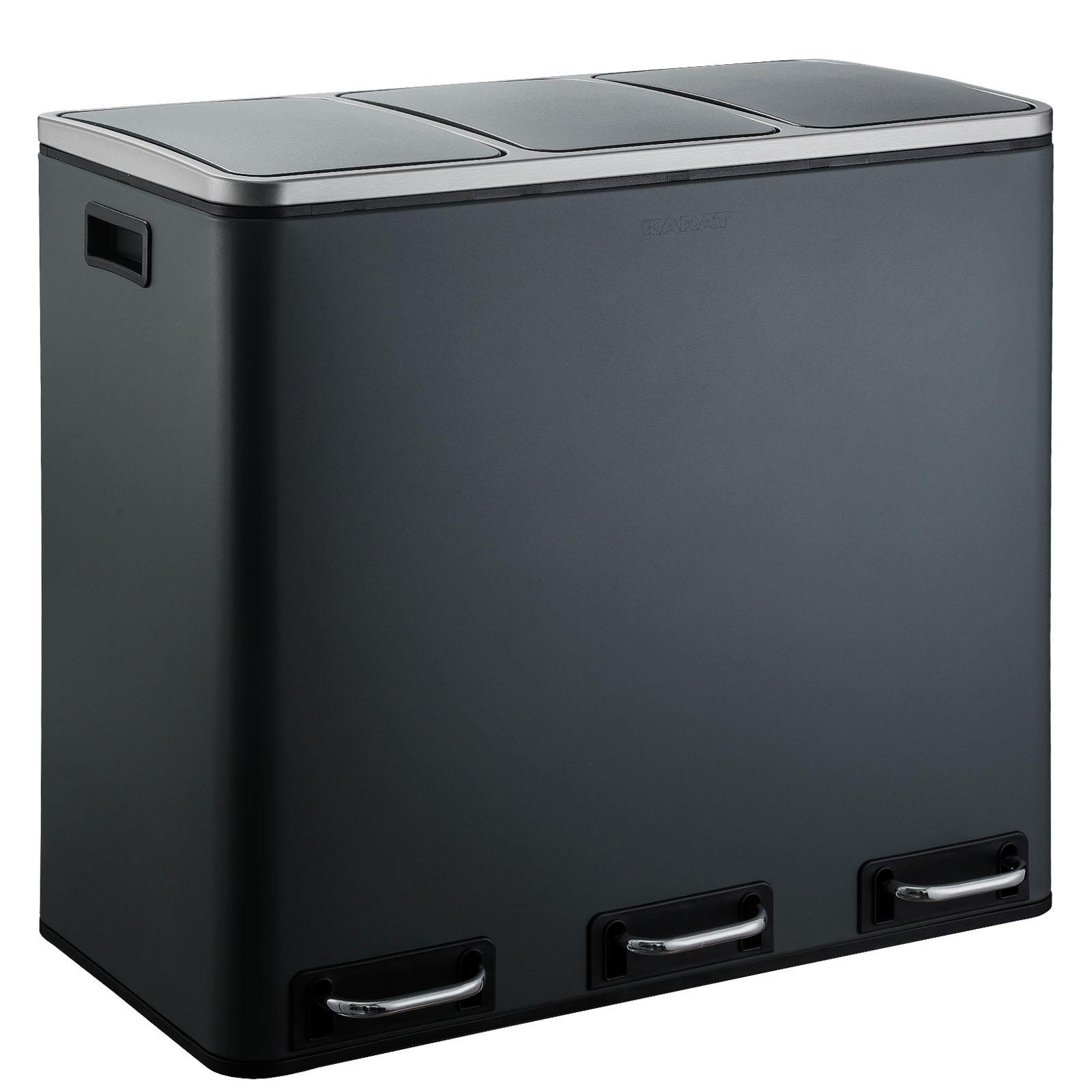 Klarstein Poubelle cuisine Poubelle à pedale Poubelle de tri Inox 45L 3 Compartiments avec Couvercle
