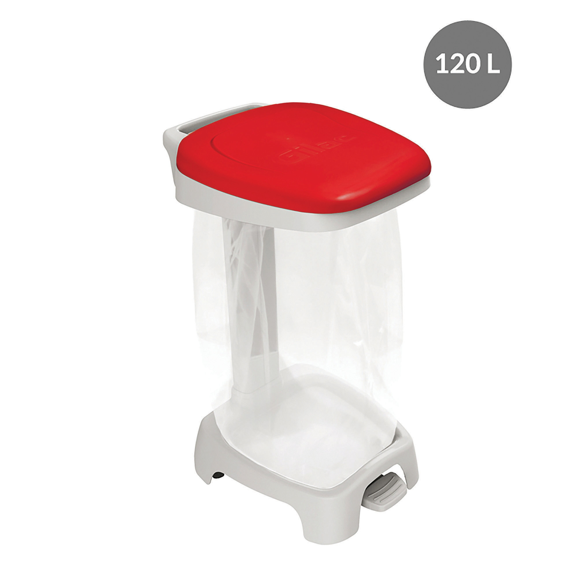 Support sac poubelle 2 roues à pédale Gilac avec couvercle rouge 120 L