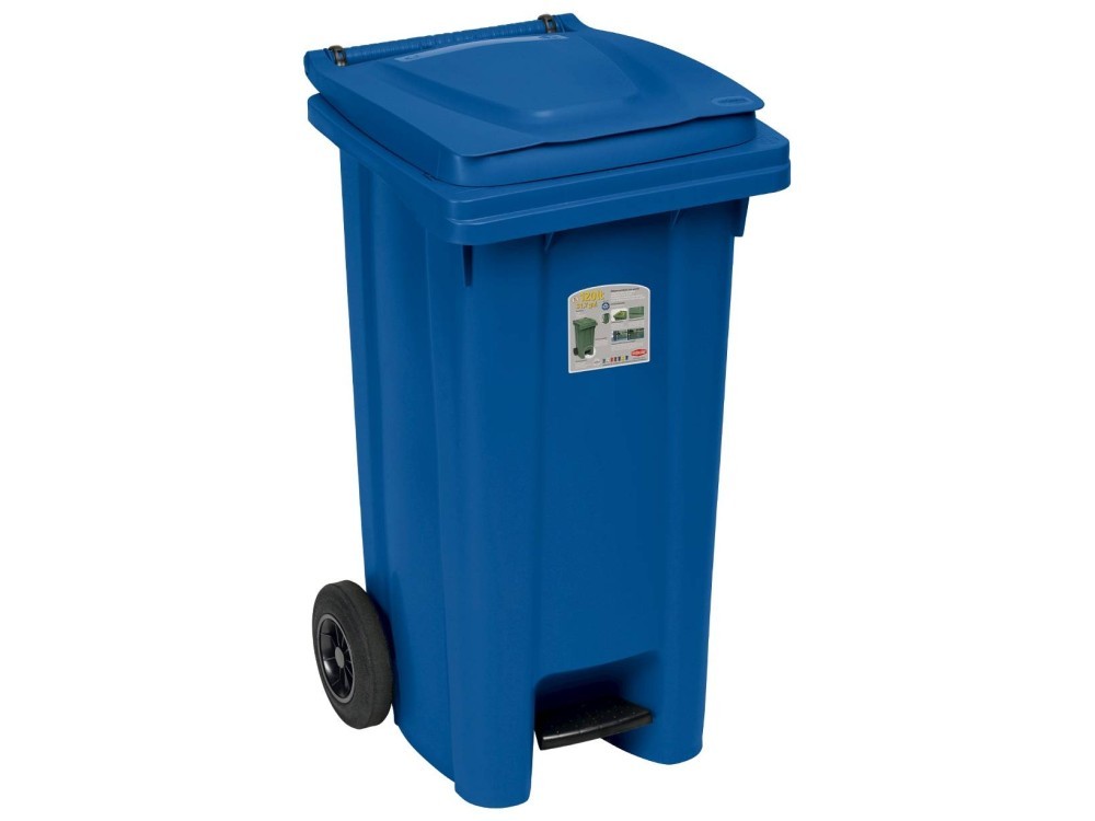 Poubelle À Roues 120 Litres Avec Pédale Bleue Stefanplast