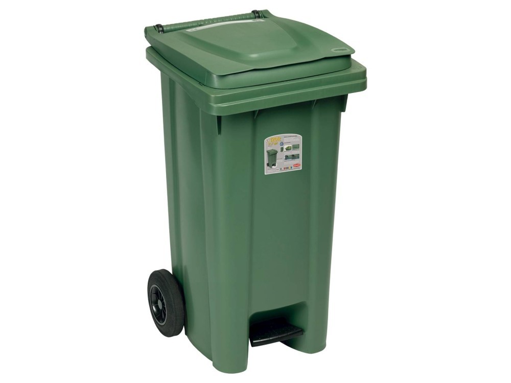 Poubelle À Roues 120 Litres Avec Pédale Verte Stefanplast