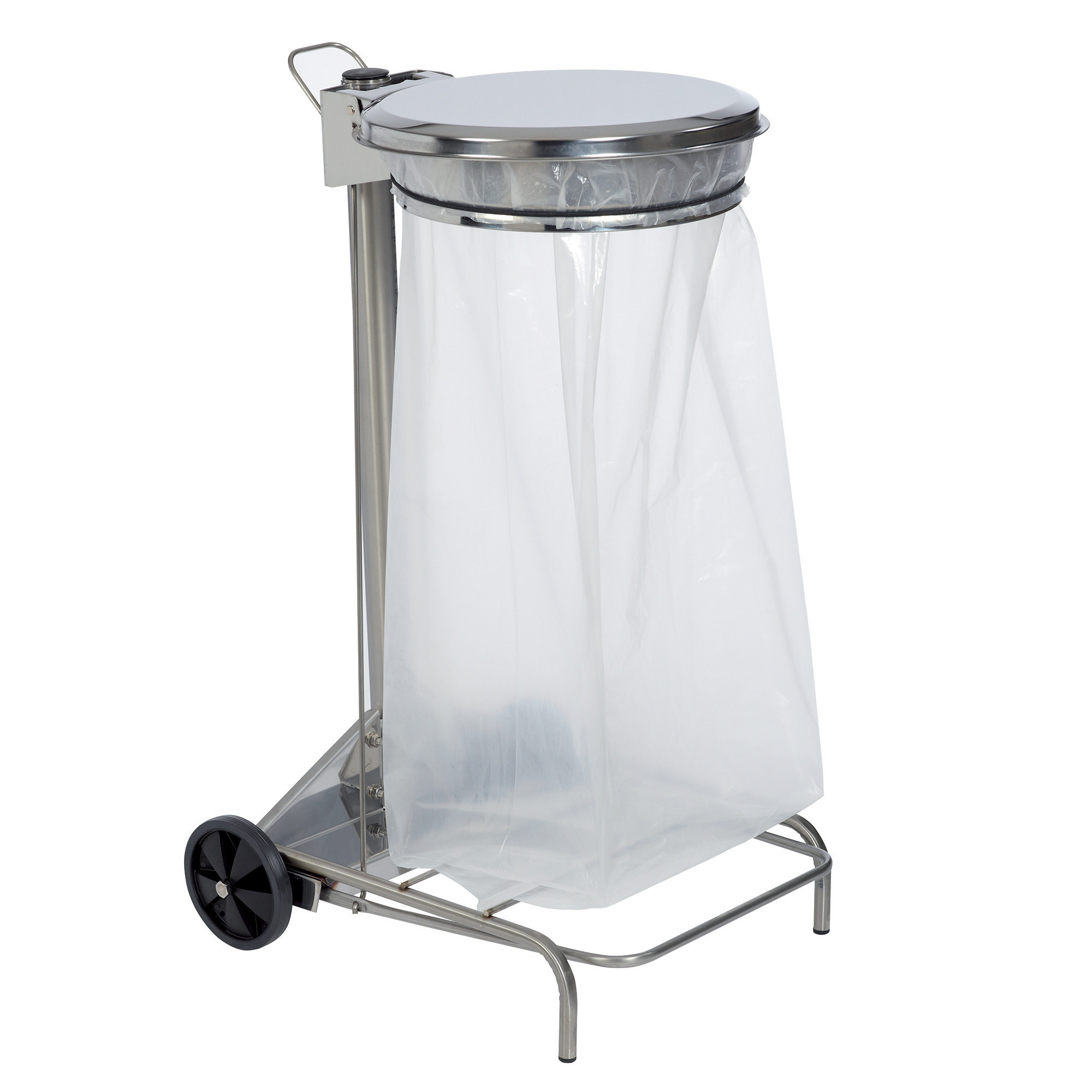 Support sac poubelle 2 roues à pédale Rossignol Collecroule avec couvercle inox 110 L