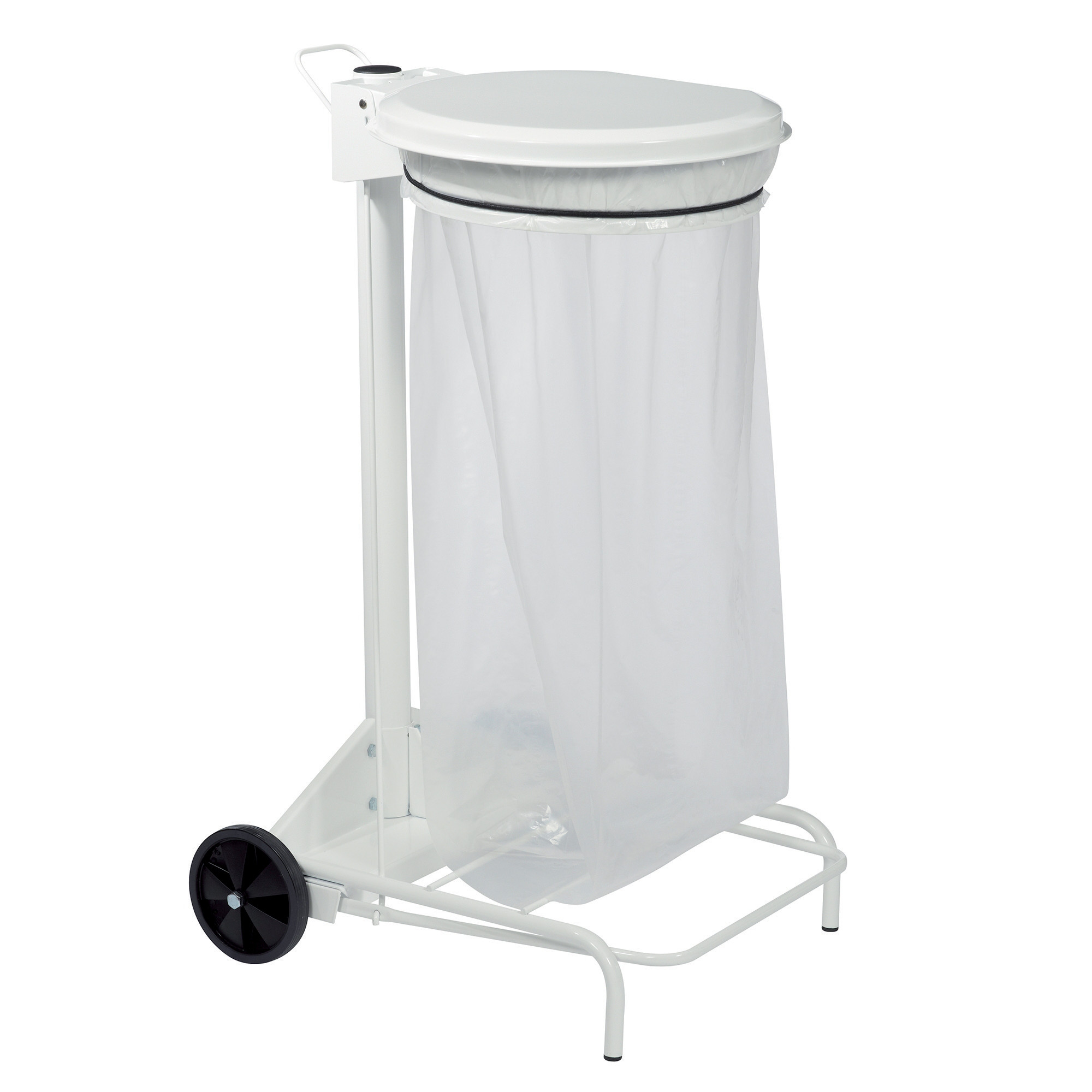 Support sac poubelle d'intérieur 2 roues à pédale blanc avec couvercle 120 L