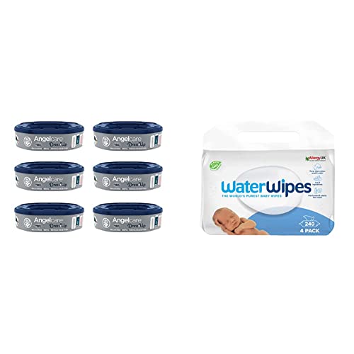 Angelcare - Dress Up - Recharges Octogonales pour Poubelle à Couche Dress up/Essential - Anti Odeurs et Grande Capacité - Lot de 6 & Lingettes bébé Originales sans plastique WaterWipes, 240 pièces