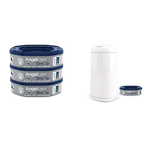 Angelcare Poubelle à Couches + 3 Recharges Anti Odeurs/Grande Capacité Antibactérien Usage Simple Dress Up, Blanc