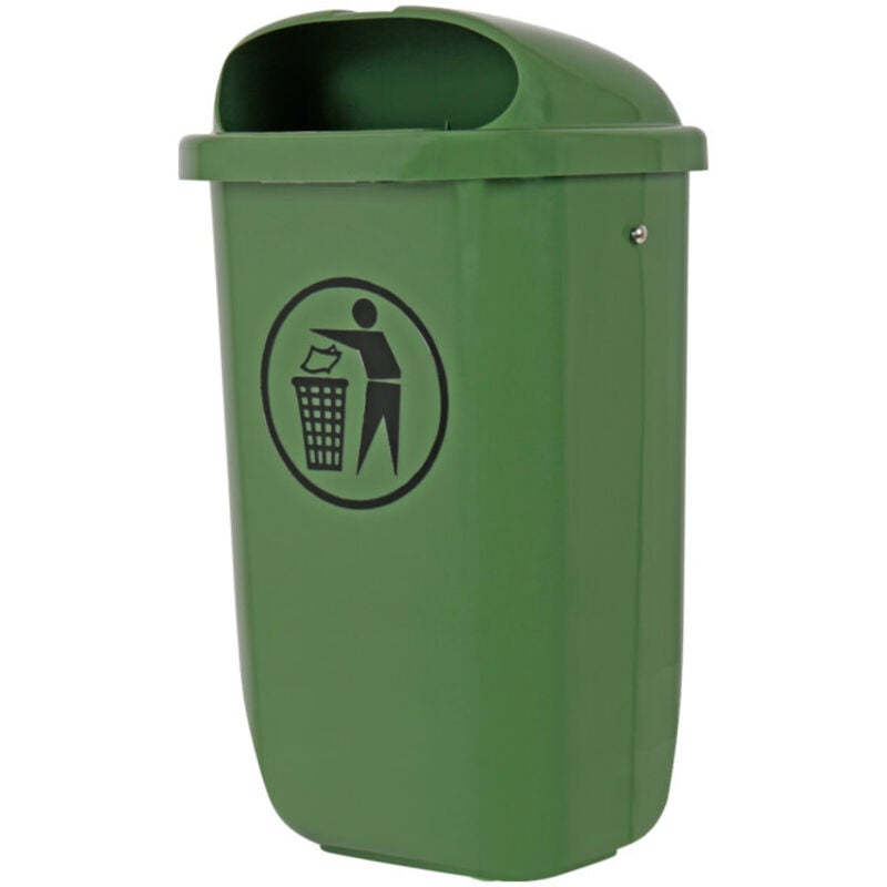 Poubelle avec couvercle anti-pluie, 50 l, vert, lxPxH 432x334x745 mm, poubelle chantier, poubelle murale, poubelle atelier, - Stier