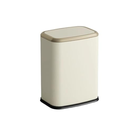 Sooyee Poubelle rectangulaire en plastique de 10 litres avec couvercle à pression, pour salle de bain, salle d'eau, chambre à coucher, cuisine, salle d'artisanat, bureau (blanc crème)
