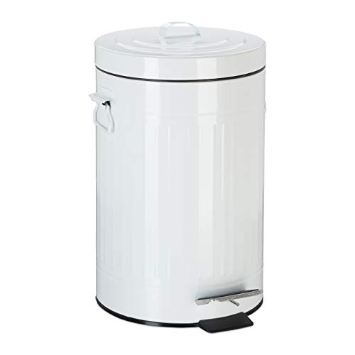 Relaxdays 10023830_806 pédale vintage, Poubelle à déchets pour la cuisine ou la salle de bain, en métal, Blanc, 12 litres, fer, plastique, 42 x 26 x 34 cm