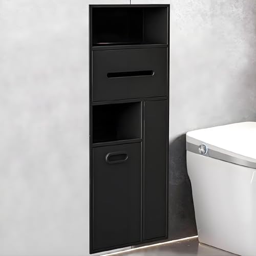 ByBoDi Porte-Papier Toilette encastré,Niche de Douche en Acier Inoxydable, Niche pour Poubelle intégrée, étagère encastrée de Rangement pour Cuisine,Salon et Chambre Black-40x67x14cm/15.7x26.4x5.5in