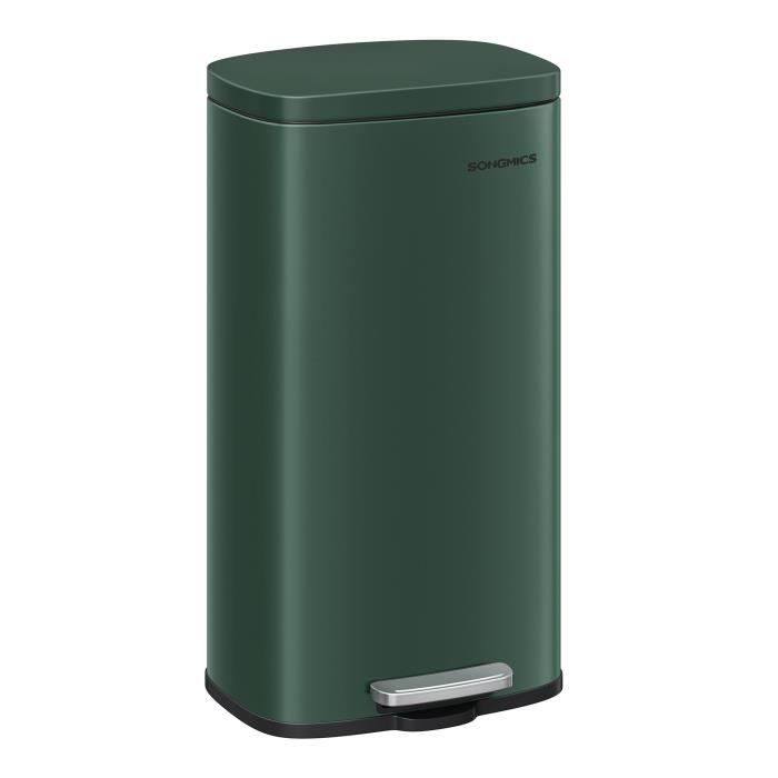 Poubelle Cuisine 30L avec Couvercle à Fermeture en Douceur Pédale Seau Intérieur en Acier Vert Rétro