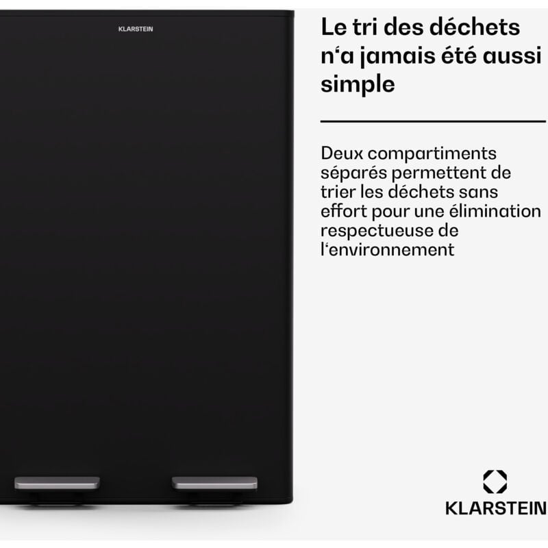 Klarstein - Poubelle de cuisine 60 l (2x30 l) avec fonction de tri des déchets, bac à compost amovible de 3 l & fermeture douce - poubelle design