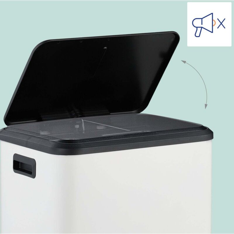 Poubelle de cuisine à double compartiment 2x20L, couvercles à fermeture silencieuse, seaux amovibles et poignées ergonomiques