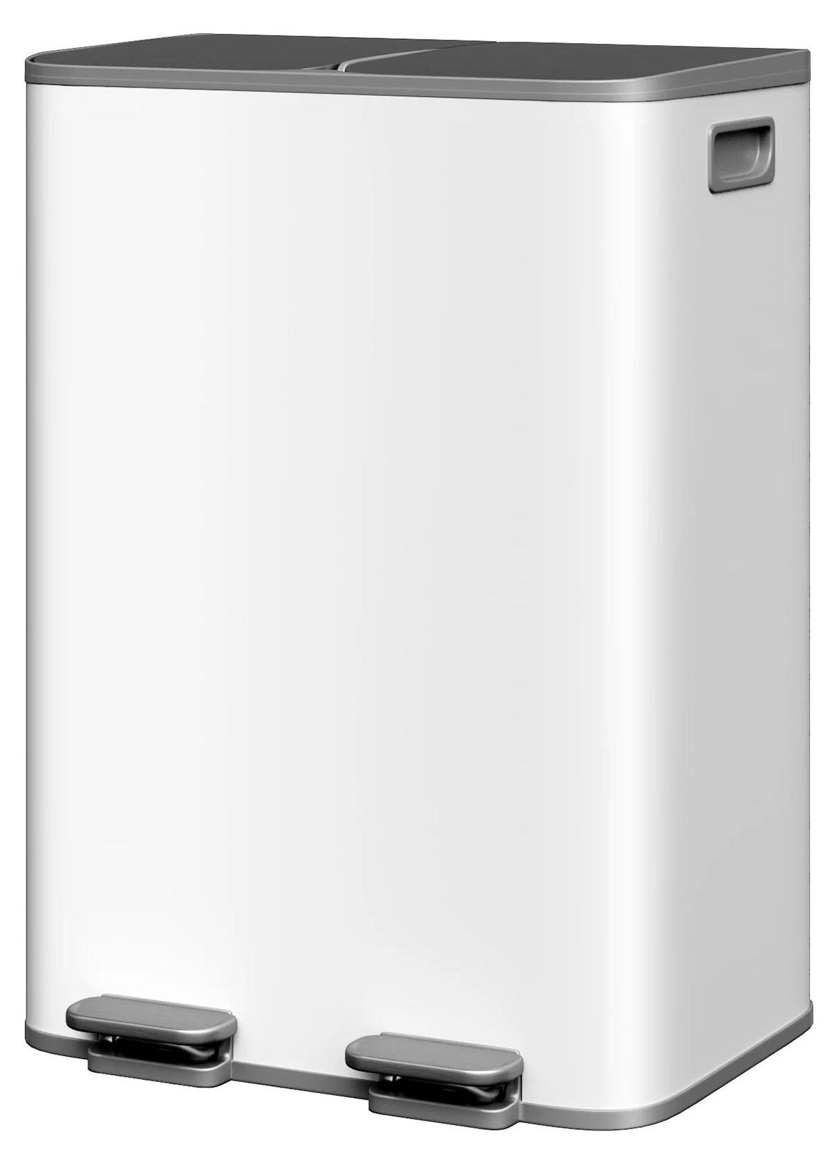 Casabel poubelle tri selectif 60l, 2x30l acier inox blanc, double compartiments, pédale, bacs amovibles, couvercles silencieux 2x30l, Acier Inox Blanc