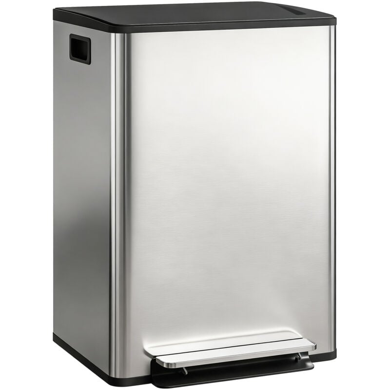 Poubelle de cuisine - HOMCOM - double compartiment 2 x 30L - pédale - seaux intérieurs - acier inoxydable - 47,5x37,5x67cm - argent