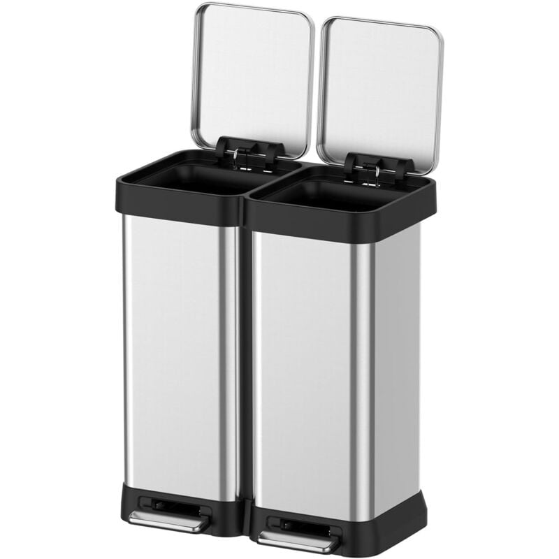 Poubelle double compartiment 2 x 30L, poubelle cuisine pdale, couvercle fermeture douce, 47,5x37,5x67cm, argent