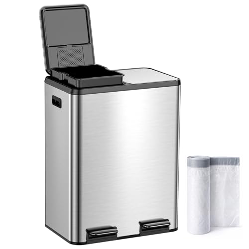 Poubelle Cuisine,Poubelle à Double Compartiment, Pédales Métal