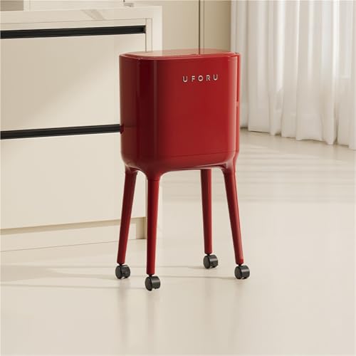 Poubelle De Cuisine Haute Et Fine avec roulettes Et Couvercle À Pression – Poubelle Compacte À Pied Haut, Anti-Odeurs pour Salle De Bain, Bureau Et Petits Espaces(Red)