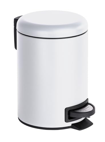WENKO Poubelle à pédale Leman, 3L, Petite Poubelle Salle de Bain, Acier Blanc Mat, 3L, 17 x 25 x 22.5 cm