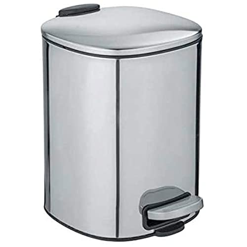 WENKO Petite poubelle salle de bain à pédale Alassio, poubelle de salle de bain de qualité avec système d'abaissement Easy-Close, capacité 5L, en acier inox, 20,5x27x24,5cm, gris