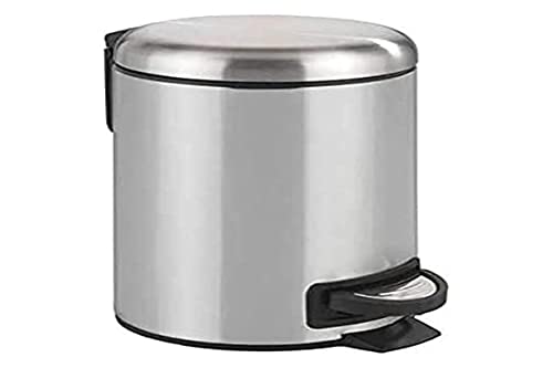 Amazon Basics Petite poubelle ronde cylindrique à fermeture en douceur avec pédale pour salle de bain et petit espace, 5 l, acier inoxydable brossé
